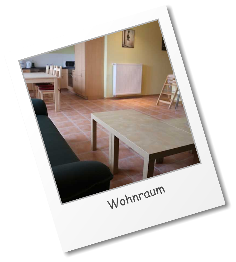 jeweils u.a. mit Sofas, Couchtisch, Farbfernseher mit Sat-Empfang, DVD-Player, Radio mit CD-Player und Kaminofen.